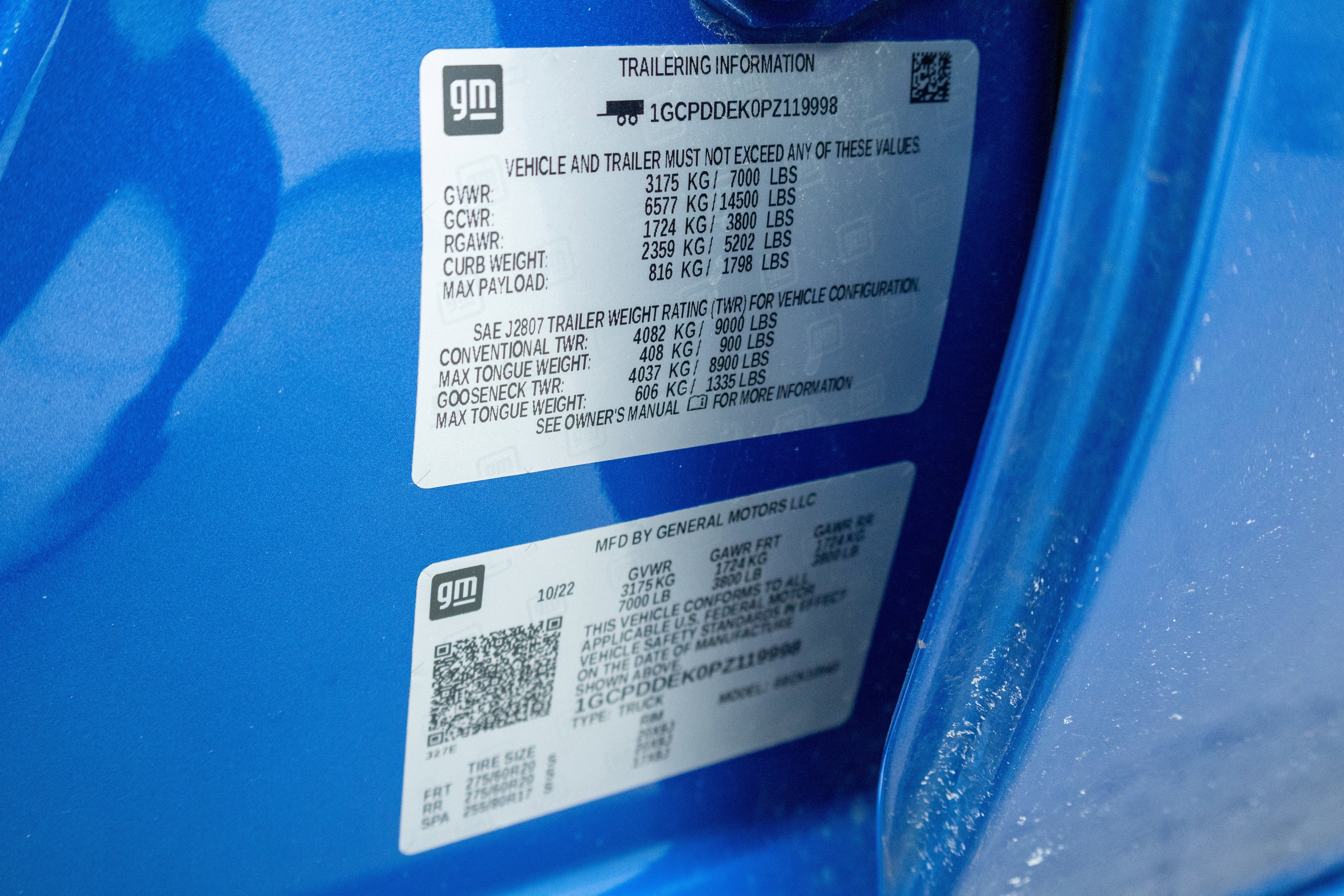 - Front Tire Size: 275/60R20SL