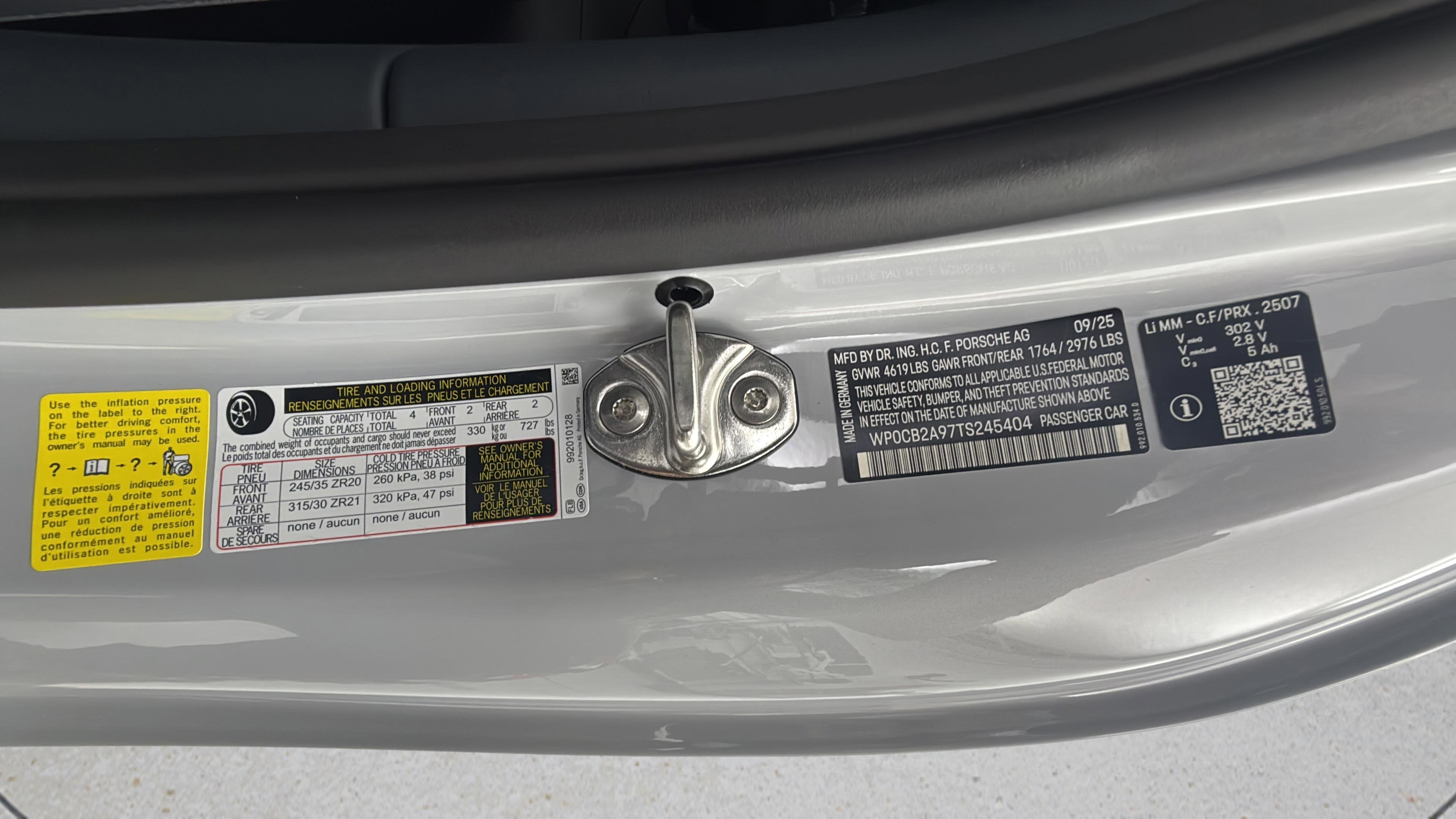 - Tires: 245/35ZR20 Front & 315/30ZR21 Rear